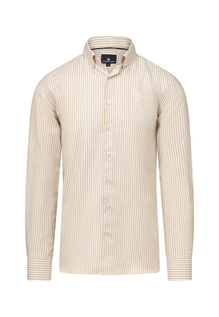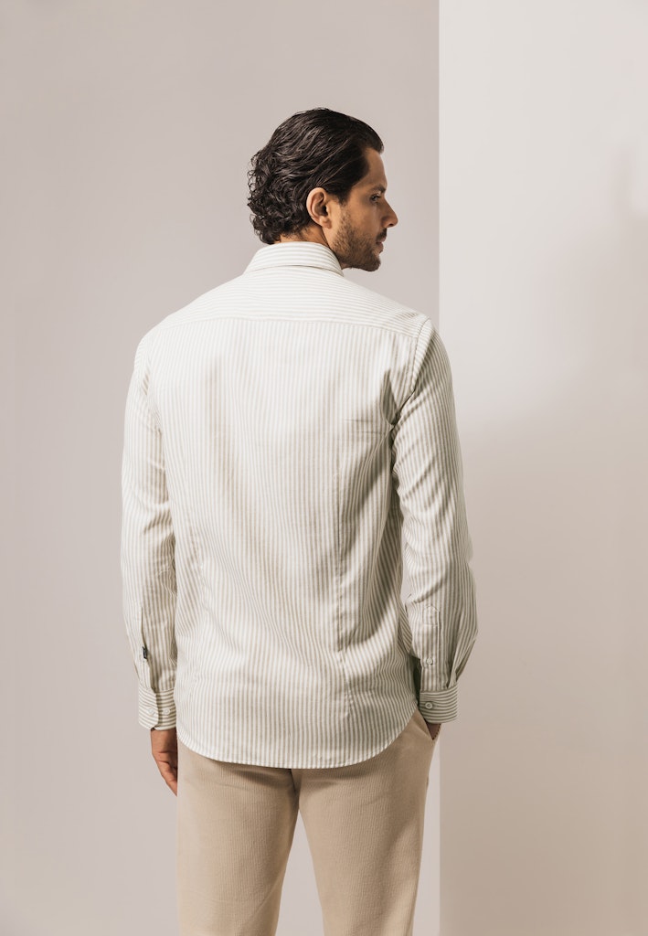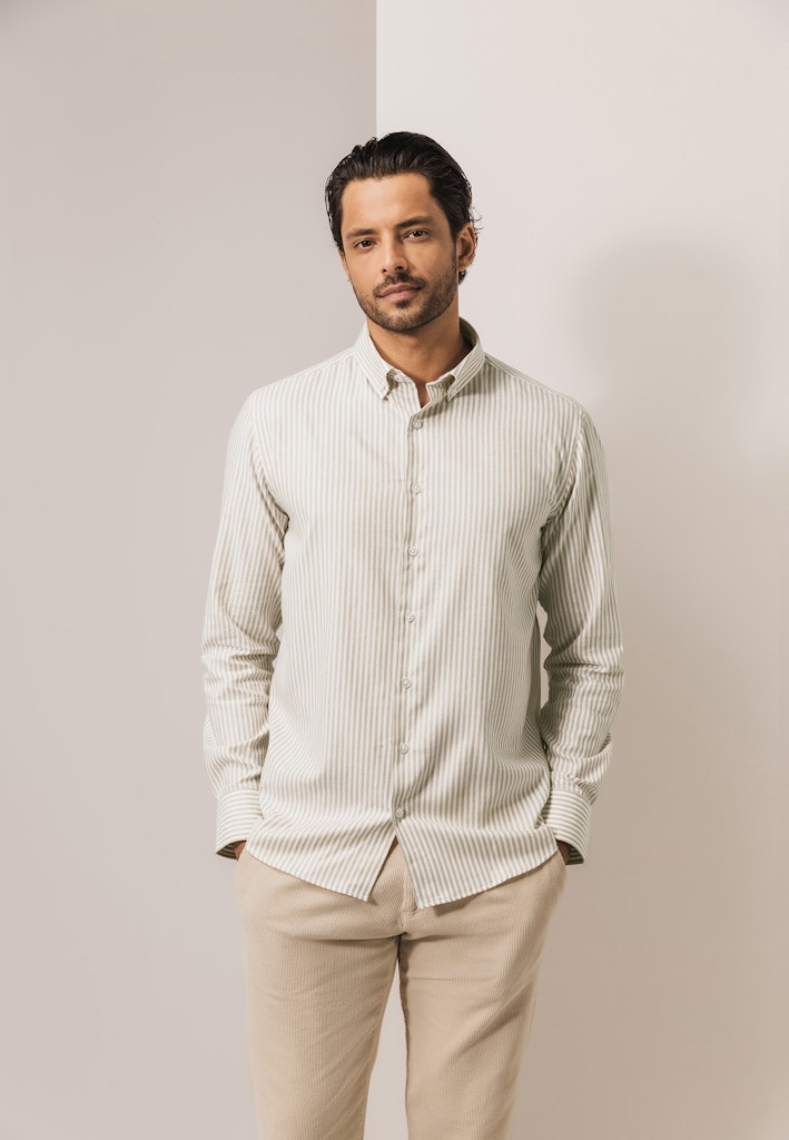 Dit regular fit overhemd is gemaakt van een gestreepte twillstof met katoen en lyocell en heeft een button-downkraag. De stof valt glad, voelt zacht en koel aan en biedt een ademend draagcomfort, terwijl de verticale streep het silhouet optisch verlengt.