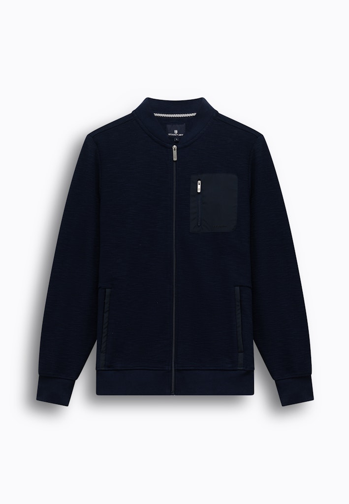 Bombervest uitgevoerd in een comfortabele sweatstof met slubgaren voor een subtiele structuur en een moderne uitstraling. De regular fit biedt een prettig draagcomfort en een verzorgde pasvorm. Voorzien van een ritssluiting, twee steekzakken en een borstzak met rits voor praktische opbergruimte. De nylon details en de rubberen badge op de mouw geven het vest een sportief accent. Gemaakt van een mix van katoen, polyester en elastaan.