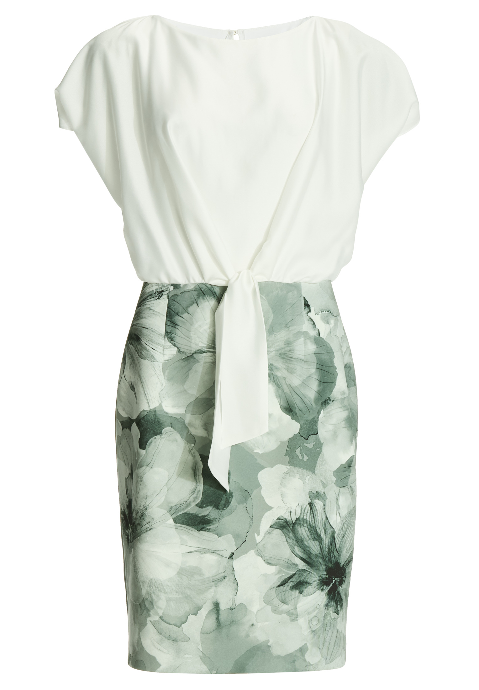 Deze charmante schedejurk combineert een eenvoudige top met een bloemen kokerrok die je figuur elegant accentueert. Perfect voor zomerse evenementen of stijlvolle tuinfeestjes, waar je er altijd op je best uitziet. Het knoopdetail op het lijfje geeft een vrouwelijke touch en zorgt voor een perfecte pasvorm.