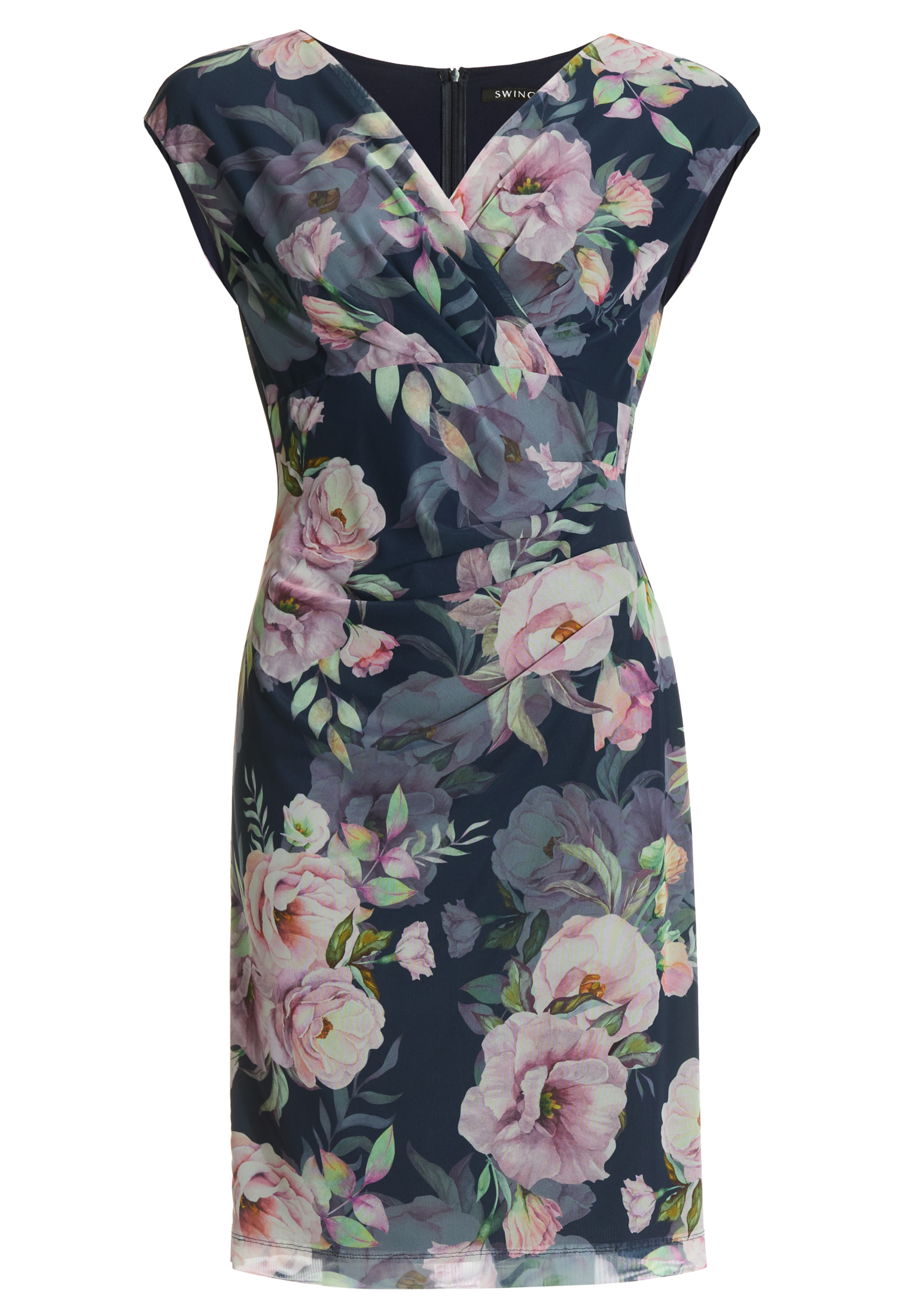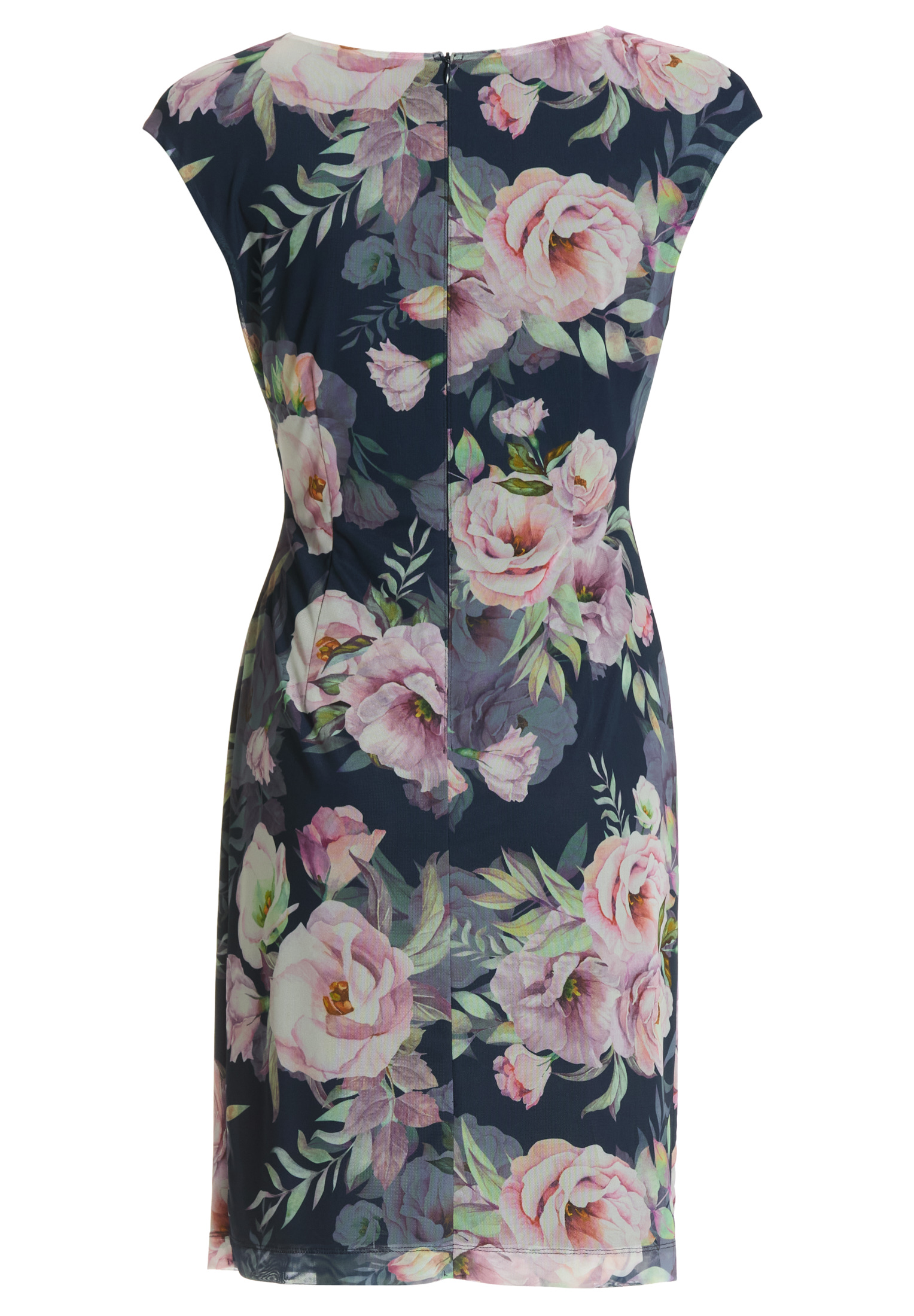 Een bloemenjurk in mesh met een wikkellook en een figuuraanzittende silhouet - ideaal voor zomerfeesten, familiefeesten of elegante dagactiviteiten. De V-halslijn rekt zich visueel uit en laat het decolleté prachtig zien. Het lichte materiaal zorgt voor een aangenaam draagcomfort met een vrouwelijke uitstraling.