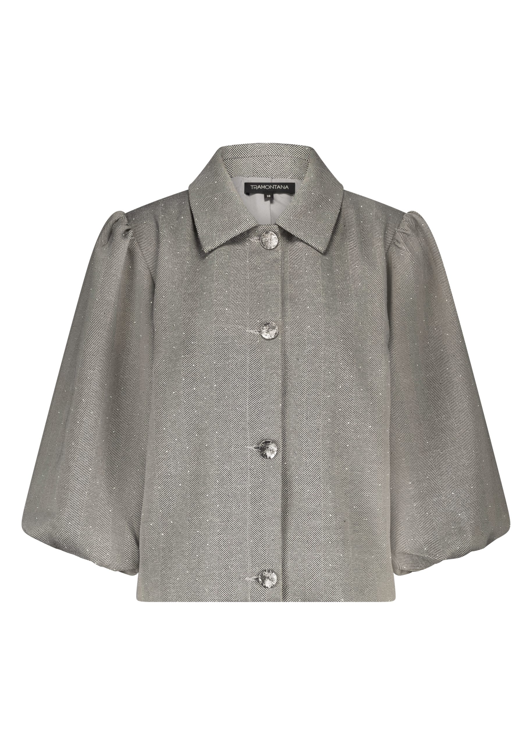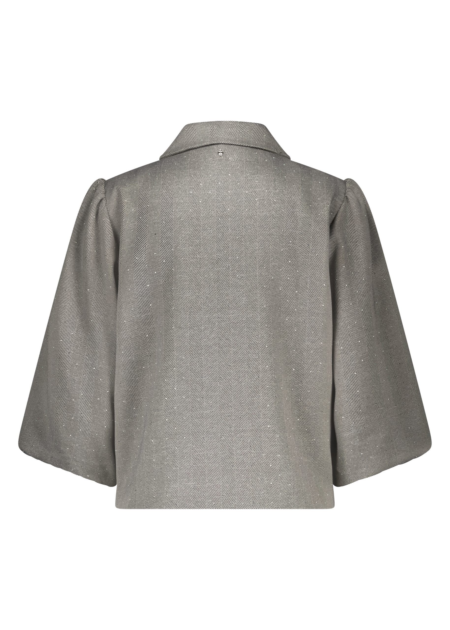 Dit jasje is gemaakt van 100% polyester, wat zorgt voor een zachte, lichte stof die perfect is voor de koudere maanden. Het bijzondere herringbone patroon geeft het jasje een luxe uitstraling, terwijl de ballonmouwen een speelse en elegante touch toevoegen.