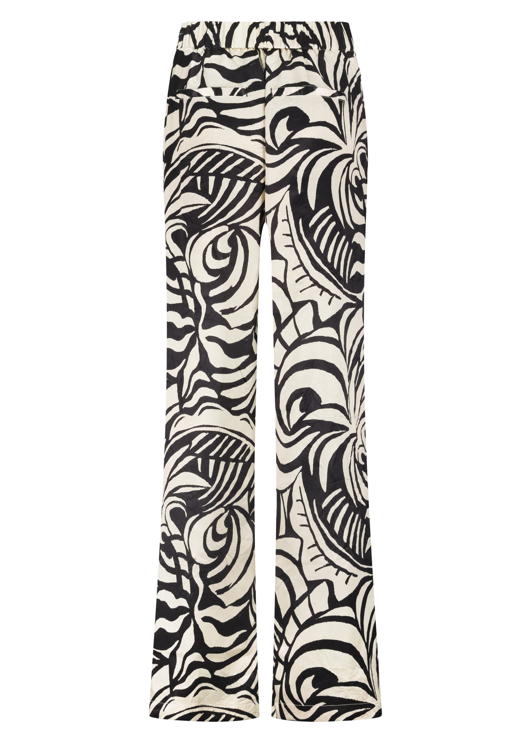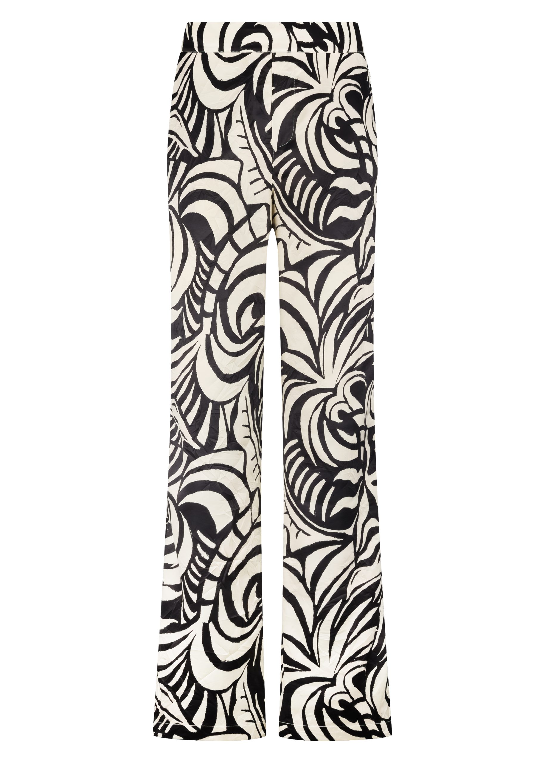 Deze broek is een uitgesproken en stijlvolle broek met een grafische print en een krachtige, moderne uitstraling. Deze broek is vervaardigd uit 100% polyester, wat zorgt voor een licht draaggevoel, een soepele valling en een vormvaste kwaliteit die de hele dag mooi blijft. De rechte tot licht wijde pijpen creëren een elegant en verlengend silhouet, terwijl de comfortabele tailleband zorgt voor een prettige pasvorm met een verfijnde uitstraling.