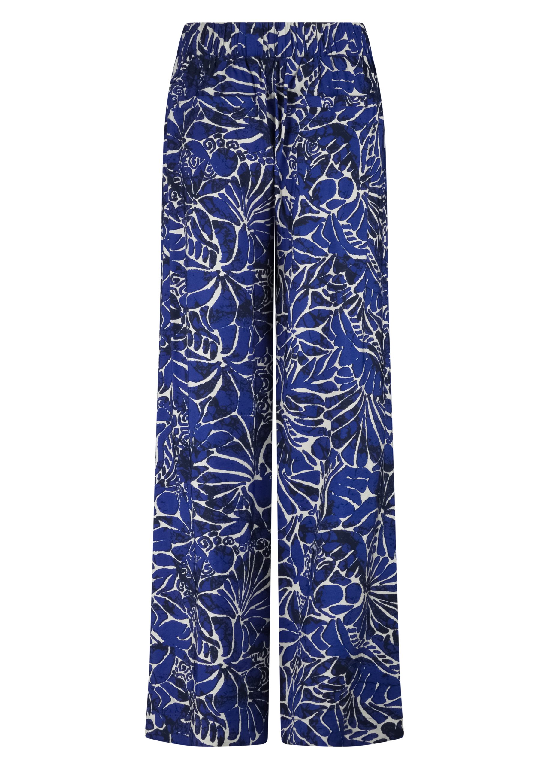 Deze broek is vervaardigd uit een comfortabele en soepele stofmix van 70% bamboe en 30% polyamide, wat zorgt voor een zacht draaggevoel, een lichte structuur en een mooie, vloeiende valling. De opvallende print geeft de broek een expressief en modieus karakter, perfect voor wie graag een unieke look creëert. Het wide-leg silhouet zorgt voor een elegant en verlengend effect, terwijl de comfortabele tailleband bijdraagt aan een prettige pasvorm voor dagelijks draagcomfort.