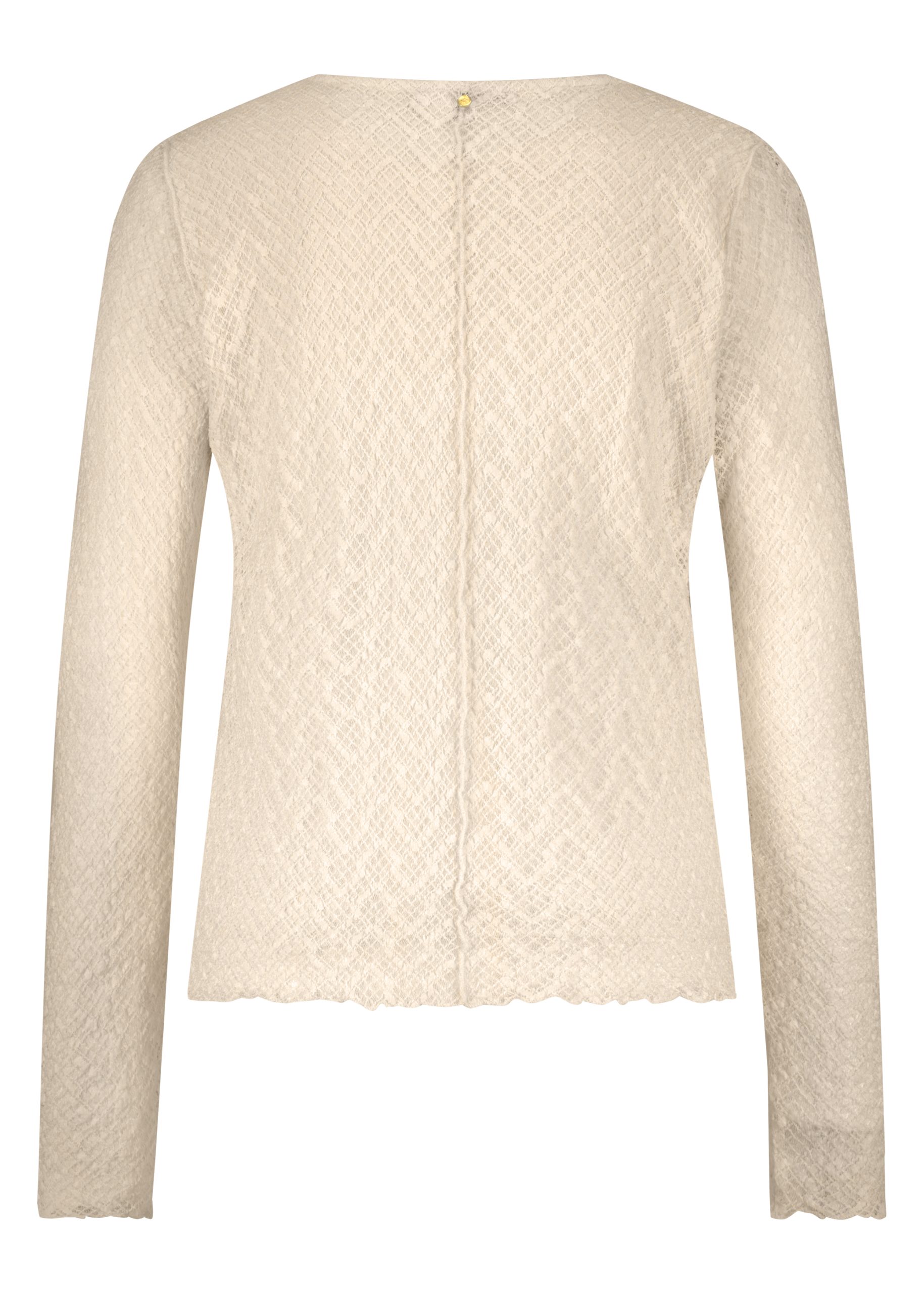 De combinatie van 55% polyamide, 40% katoen en 5% elastaan zorgt voor een fijne stretch en een mooie pasvorm, terwijl de voering van 95% viscose en 5% elastaan zacht aanvoelt op de huid. De transparante kanten mouwen en het fijn uitgewerkte motief geven de top een subtiele, sensuele touch.