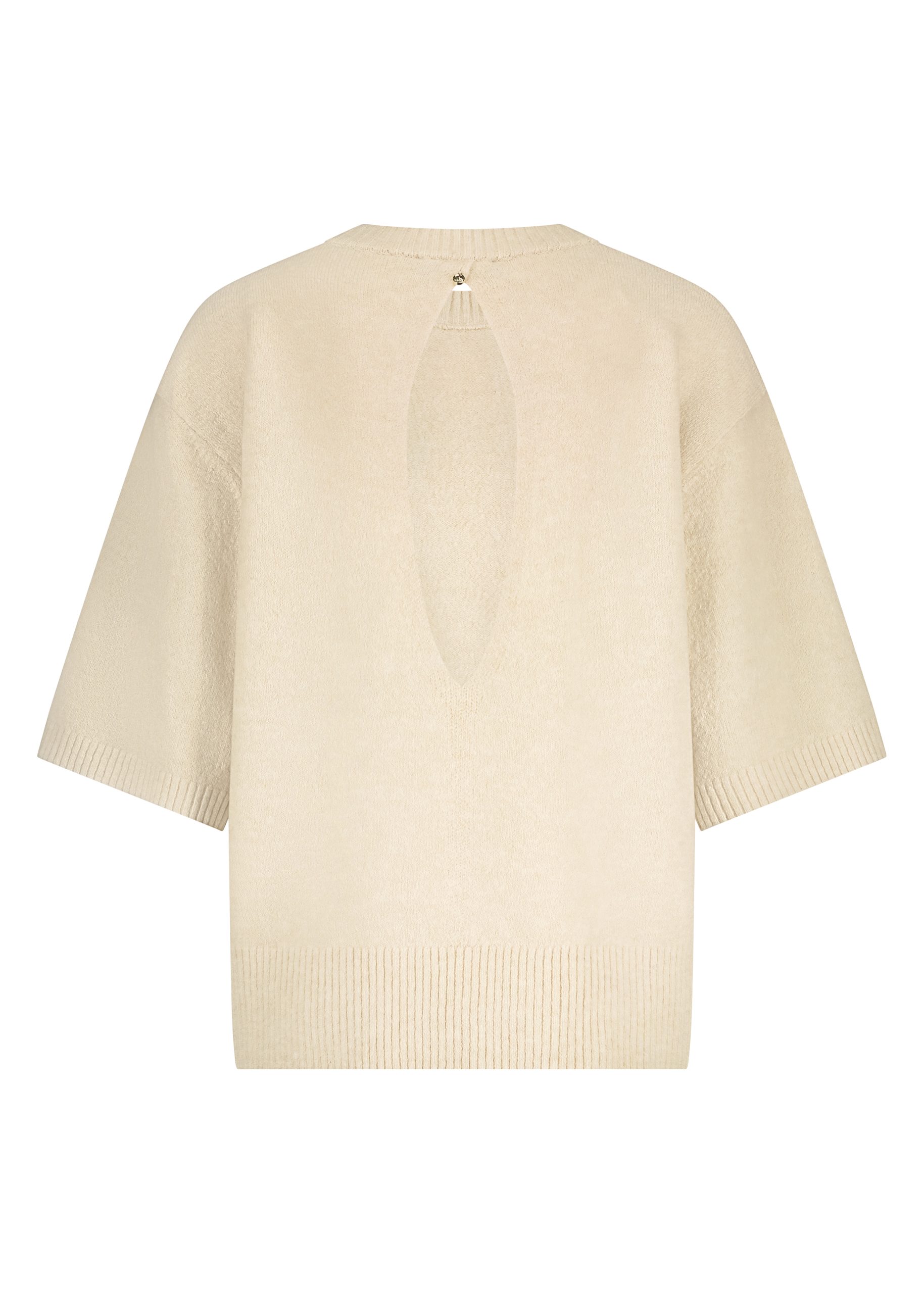 Gemaakt van een duurzame mix van 33% rPET, 26% polyacrylonitril, 24% polyester, 14% polyamide en 3% elastaan, biedt deze trui een comfortabele pasvorm met een lichte stretch voor ultiem comfort. Het opvallende detail aan de achterkant voegt een unieke en chique flair toe aan de trui, waardoor deze niet alleen stijlvol, maar ook interessant is. De korte mouwen bieden een luchtige uitstraling, ideaal voor een casual dag of als onderdeel van een gelaagde look.
