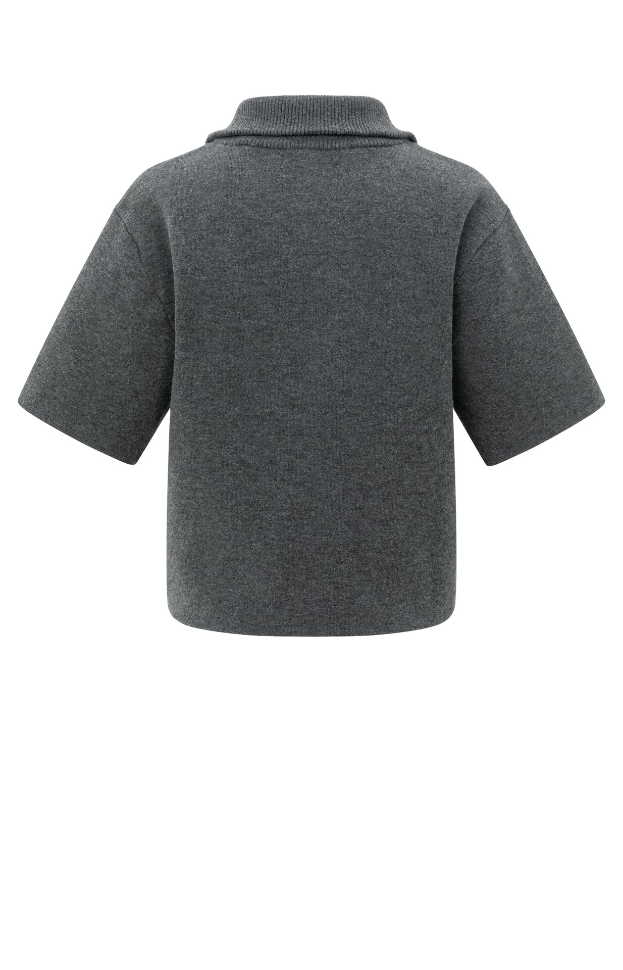 Deze trui is ontworpen met een losse pasvorm, korte mouwen en een hoge kraag met ribstructuur. De halve ritssluiting geeft het item een sportieve twist, terwijl de zachte stof zorgt voor optimaal draagcomfort. Een eigentijdse basic die zowel casual als stijlvol gedragen kan worden