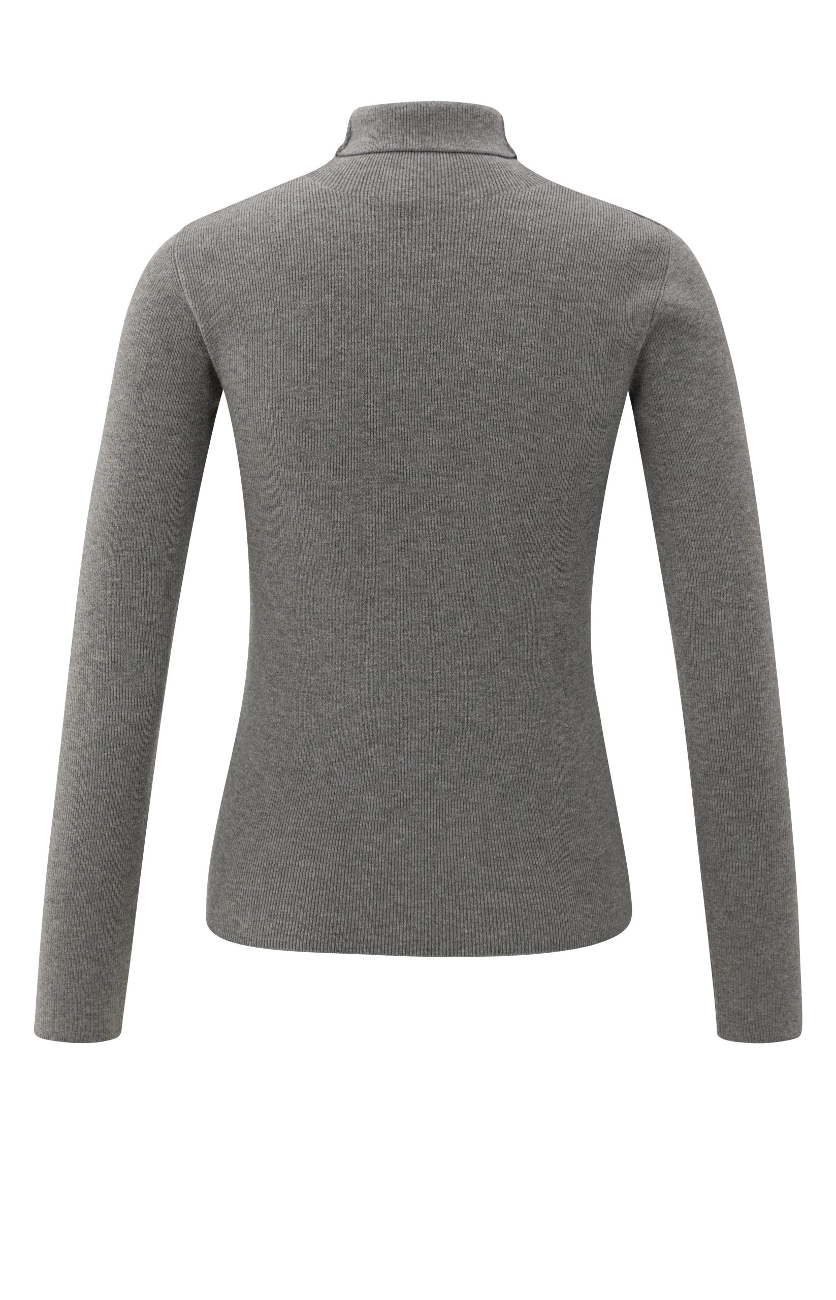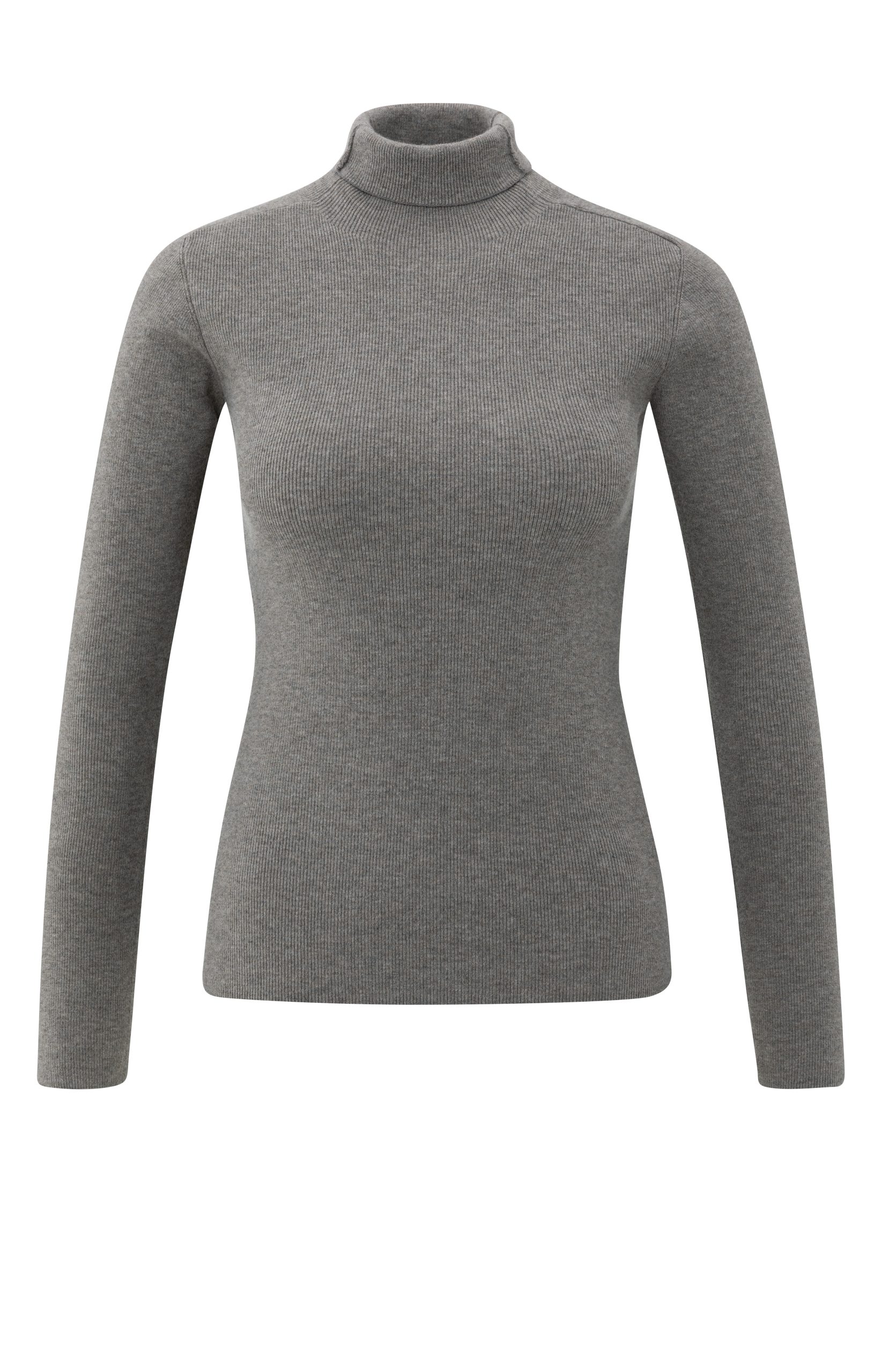 Deze fijne trui is gemaakt van een zachte, ribgebreide jersey en heeft een col en een nauwsluitende pasvorm die mooi aansluit op het lichaam. De lange mouwen en stretchkwaliteit zorgen voor extra comfort. Een veelzijdig basic item dat ideaal is om solo te dragen of als laagje onder een blazer of vest