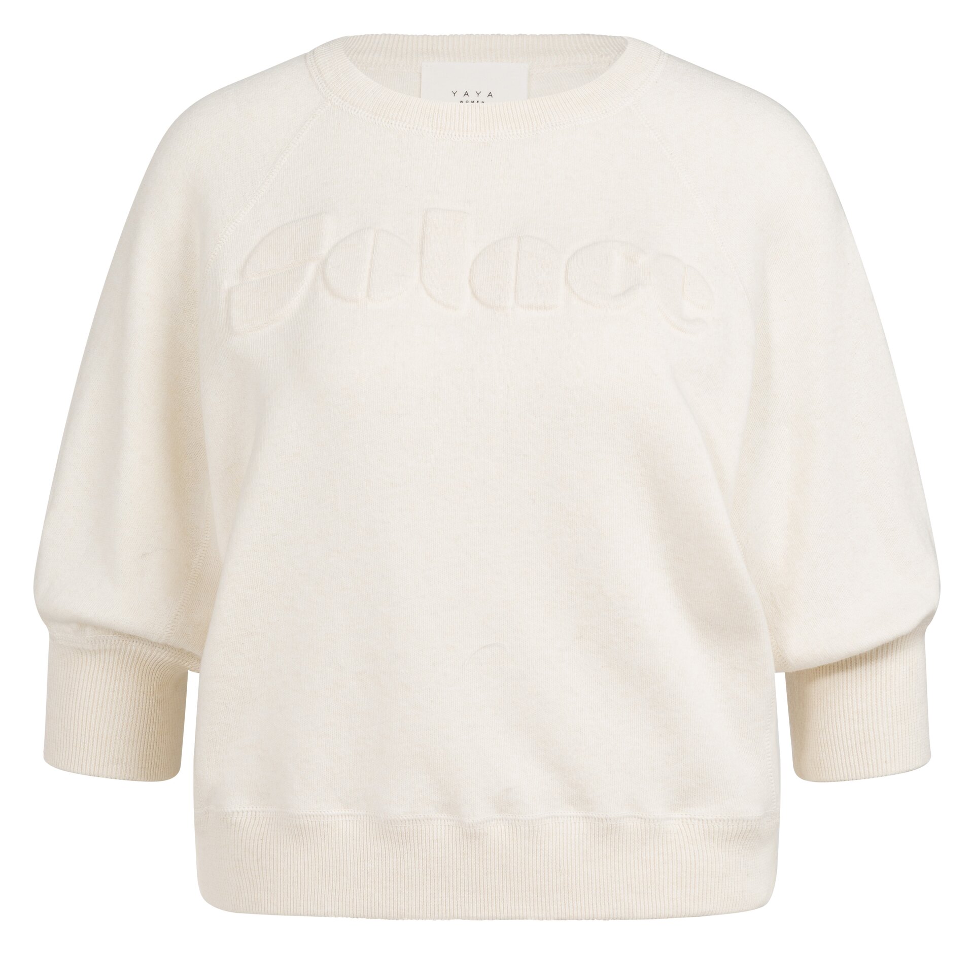 Deze zachte trui heeft driekwart raglanmouwen, een ronde halslijn en een losse pasvorm. De tonale 'solace-borduursels op de borst voegen een subtiel, verfijnd detail toe. Afgewerkt met geribde manchetten en zoom voor extra comfort en vorm. Een tijdloos stuk dat stijl en gemak combineert.