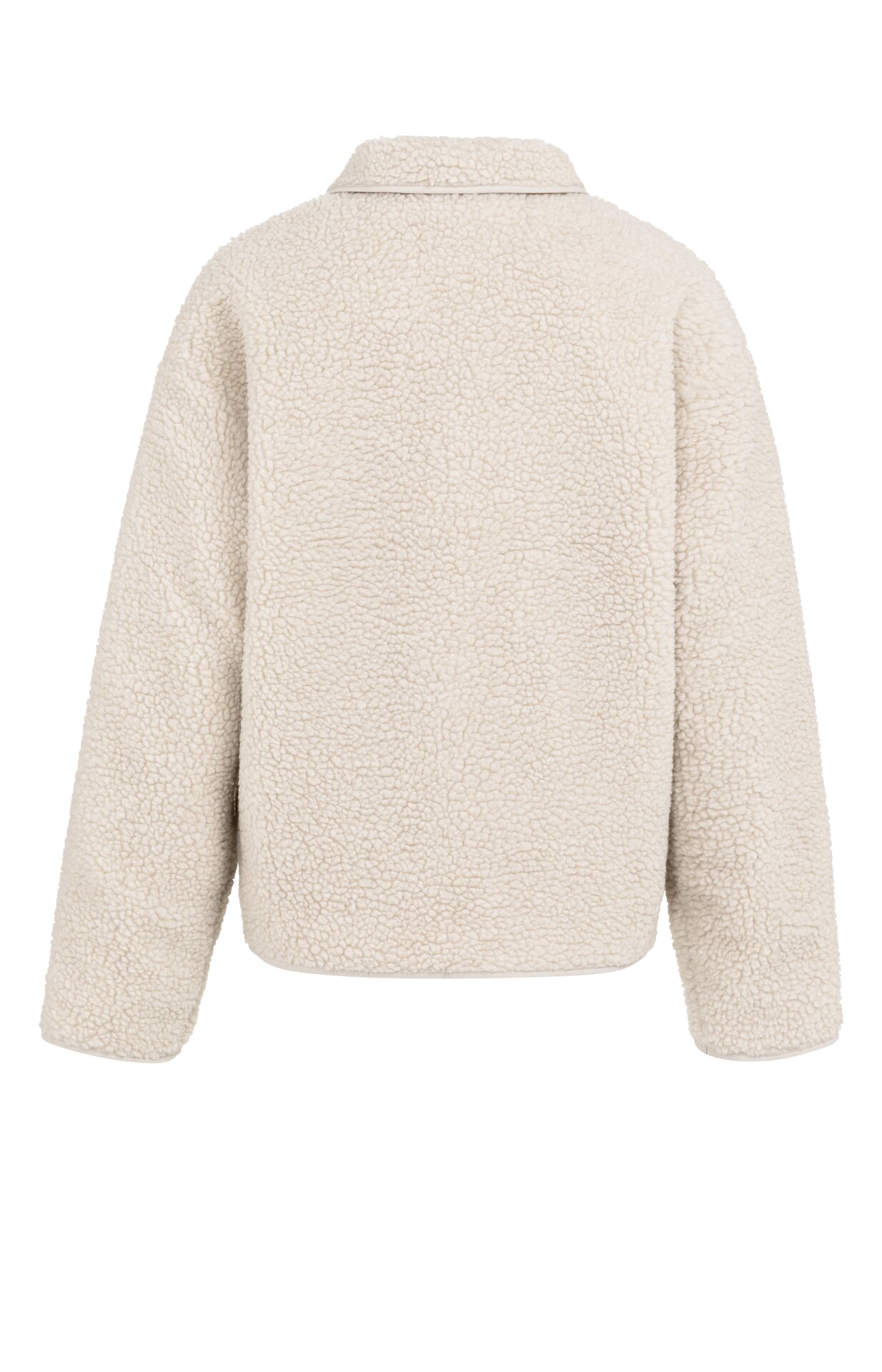 Dit omkeerbare teddyjas combineert comfort en stijl met een zachte teddy-buitenkant en een gladde binnenkant met nylonaccenten. Het jasje is ontworpen met een opstaande kraag, knopsluiting, lange mouwen en een opvallende borstzak met tekstdetails. Dankzij de reguliere pasvorm en het dual-wear ontwerp is het een veelzijdig en eigentijds stuk voor het overgangsseizoen.